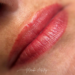 Lip blush is a cosmetic tattoo that creates the appearance of matte lip stick. A tattoo cartridge composed of 1 or more needles is used to create tiny pixels. Lip blush can be used to neutralize melanin rich lips (darker hue lips).